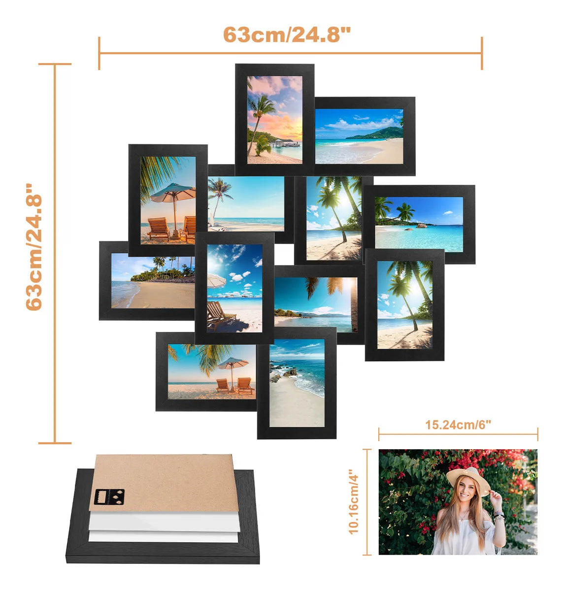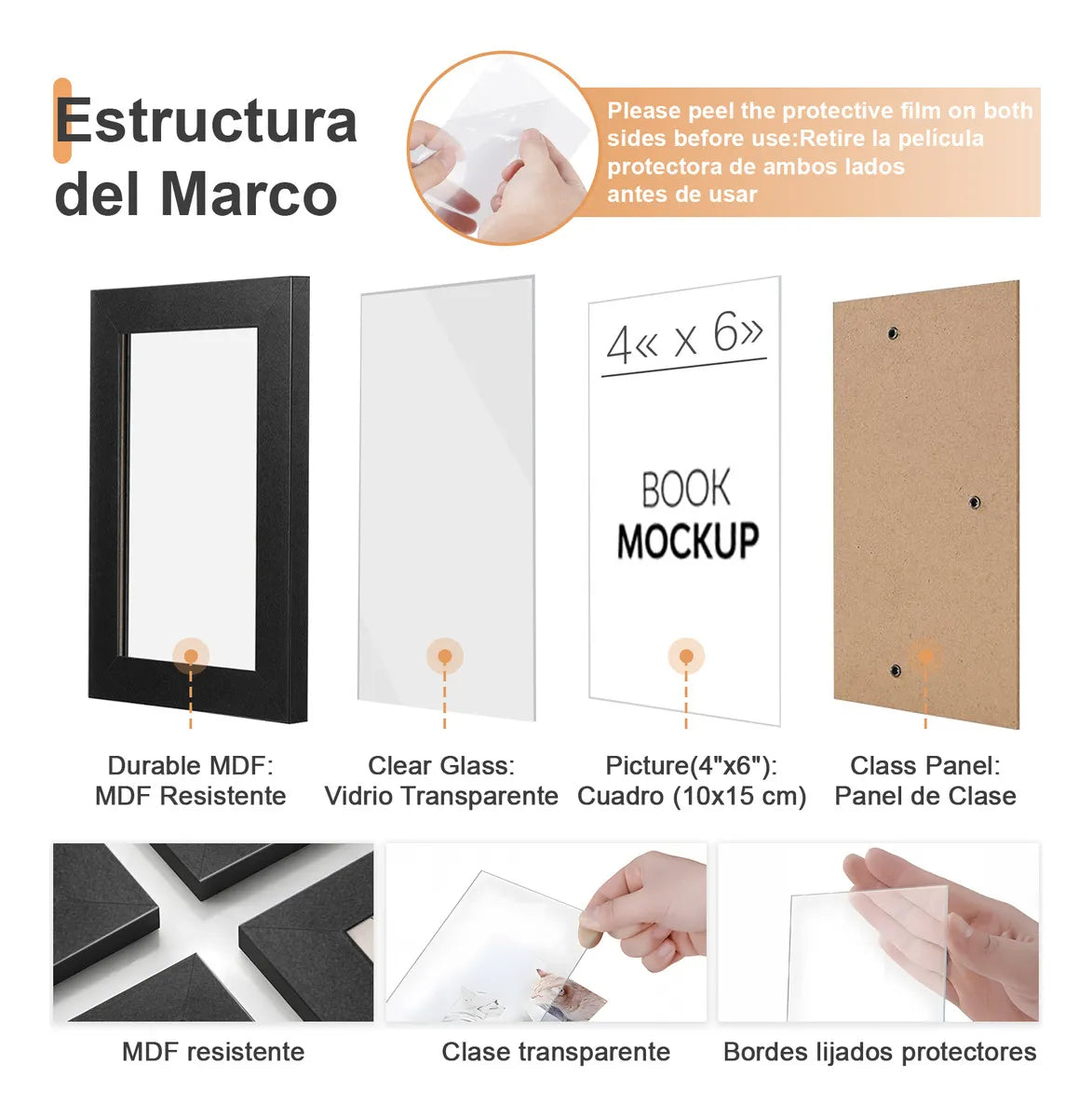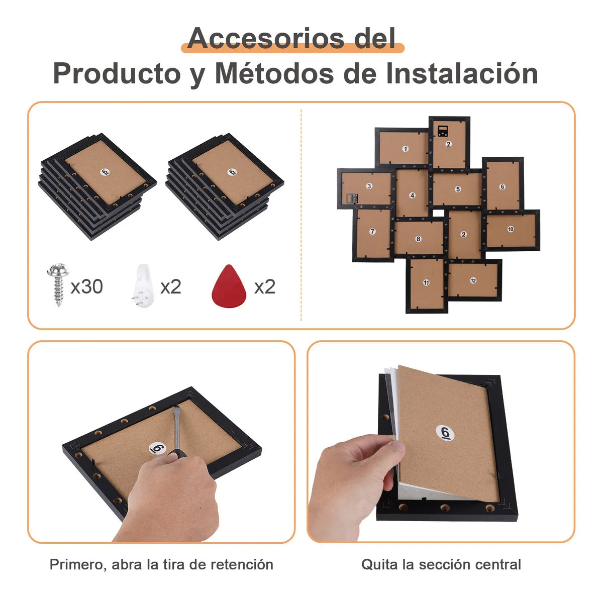 Lista de embalaje: Marco de fotos exquisito de 12*4x6 (negro) Atributos del producto: Categoría de producto: Marco de fotos Número de piezas del producto: juego de 12 piezas Color del producto: negro/blanco Dimensiones del producto: 4x6 (10 x 15cm) Forma del producto: rectangular Estilo del producto: estilo minimalista moderno. Tipo de instalación: montado en la pared, montado en la pared, escritorio -------------------------------------------------- ------- ---------------- Dos usos en un solo marco, combinables a tu gusto: Nuestro juego de 12 marcos para fotos presenta un innovador diseño modular. Un solo juego puede dar rienda suelta a tu imaginación decorativa. Se pueden usar individualmente o como un conjunto completo, ensamblándose fácilmente para crear una composición mural impresionante. Tamaño del marco de fotos: El marco total mide 13,2 cm x 18,2 cm y el marco interior mide 10 cm x 15 cm, lo que lo hace perfecto para exhibir retratos, fotografías familiares, fotografías memorables, fotografías de paisajes o fotografías de bodas familiares. Materiales de primera calidad: El marco está hecho de plástico de alta calidad, duradero y respetuoso con el medio ambiente. El plexiglás HD protege tus fotografías del polvo, la humedad y los rayones, manteniéndolas impecables durante años. Pantalla multifuncional: Diseño enmarcado en blanco y negro de 4x6 con soportes resistentes en la parte posterior; puede colgarlos horizontal o verticalmente para montarlos en la pared estilo galería, o usar el soporte para colocarlos en una mesa para exhibirlos. Observe cómo sus preciadas fotografías cobran vida y agregue interés a las paredes o mesas de su hogar. Tamaño perfecto: Este marco de fotos de 4x6 está diseñado para caber una foto de 4x6 con el tapete, o si quita el tapete, puede contener una foto de 4x6. Son adecuados para exhibir fotografías familiares, fotografías de paisajes, certificados, diplomas, obras de arte, etc. Gran idea para un regalo: Marco de fotos de 4x6 de alta calidad, perfecto para impresiones eclécticas, inauguraciones de casas, bodas, cumpleaños, baby showers y regalos para todos los amantes del bricolaje. Ayuda a combinar perfectamente con cualquier hogar, oficina, espacio de trabajo o galería, así como con el hogar. ¡Ideal para fotografías, arte y objetos de colección! imágenes o certificados