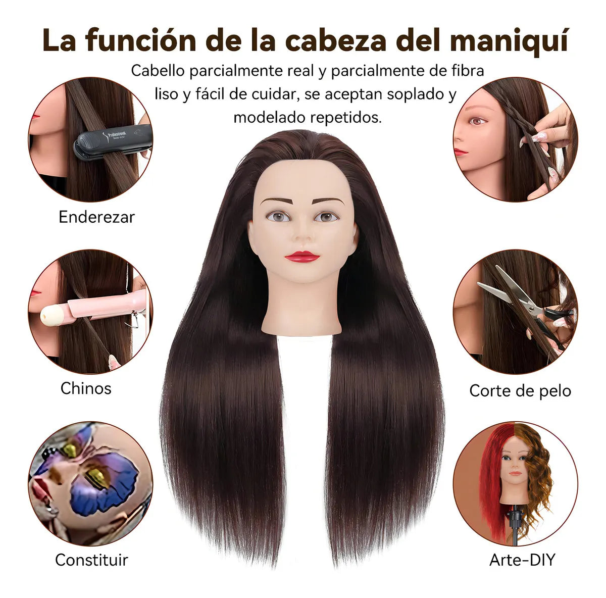 Recibirás: 500 * lazo para el cabello 18 * horquilla 12 * horquillas 1 * cabeza de maniquí 1 * soporte Nuestros modelos de cabello pueden ser planchados, teñidos y decolorados. Podrás diseñar tu peinado favorito y mejorar tus habilidades de peluquería. Aviso: al usar por primera vez, algún pelo caerá, por favor cepille hacia atrás de abajo hacia arriba. Se recomienda el uso de un peine de dientes anchos. Para limpiar la peluca, simplemente lave y cepille el cabello con champú en agua fría y seque al aire. Razones que vale la pena comprar: * Material: 90% cabello humano + 10% material de fibra. Todo el pelo ha sido lavado y esterilizado químicamente. Compra con confianza. La longitud del cabello es súper gruesa, con una longitud de 65cm desde la frente hasta las puntas posteriores. * Versátil: el cabezal de peinado del maniquí está diseñado para alisar, practicar trenzas y cortar el cabello. El cabello se puede teñir o decolorar. Podrás diseñar tu peinado favorito y mejorar tu nivel de peluquería. * aplicación: la cabeza del maniquí es adecuada para barbería, salón de peluquería, escuela de medicina. La cabeza de muñeca está disponible para peluqueros o estudiantes de belleza. Regalos de ensueño para niñas. * aprendizaje entretenido: haga el pelo con los niños, cultive la capacidad práctica y desarrolle la imaginación. Esta cabeza de entrenamiento puede ser su puente para compartir momentos maravillosos con sus hijos. * ajuste perfecto: la cabeza del maniquí viene con un soporte de clip de mesa. Nuestros clips se pueden fijar firmemente a la mesa/silla. La calidad es sólida y duradera, lo que le permite practicar el tejido de la peluca con seguridad y facilidad. Especificación: Longitud del pelo: 65 cm. Color de cabello: marrón oscuro (debido a problemas de iluminación, puede haber una ligera desviación entre el color de la imagen y el color real, pero la diferencia no es grande y básicamente no es obvia). Cantidad: 1 pieza Material: 90% cabello humano + 10% material de fibra Longitud: 24 pulgadas Textura: recta Material del modelo: silicona