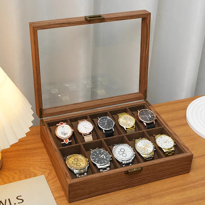 Caja Para Relojes Y Alhajero Con 10 Compartimentos En Nogal