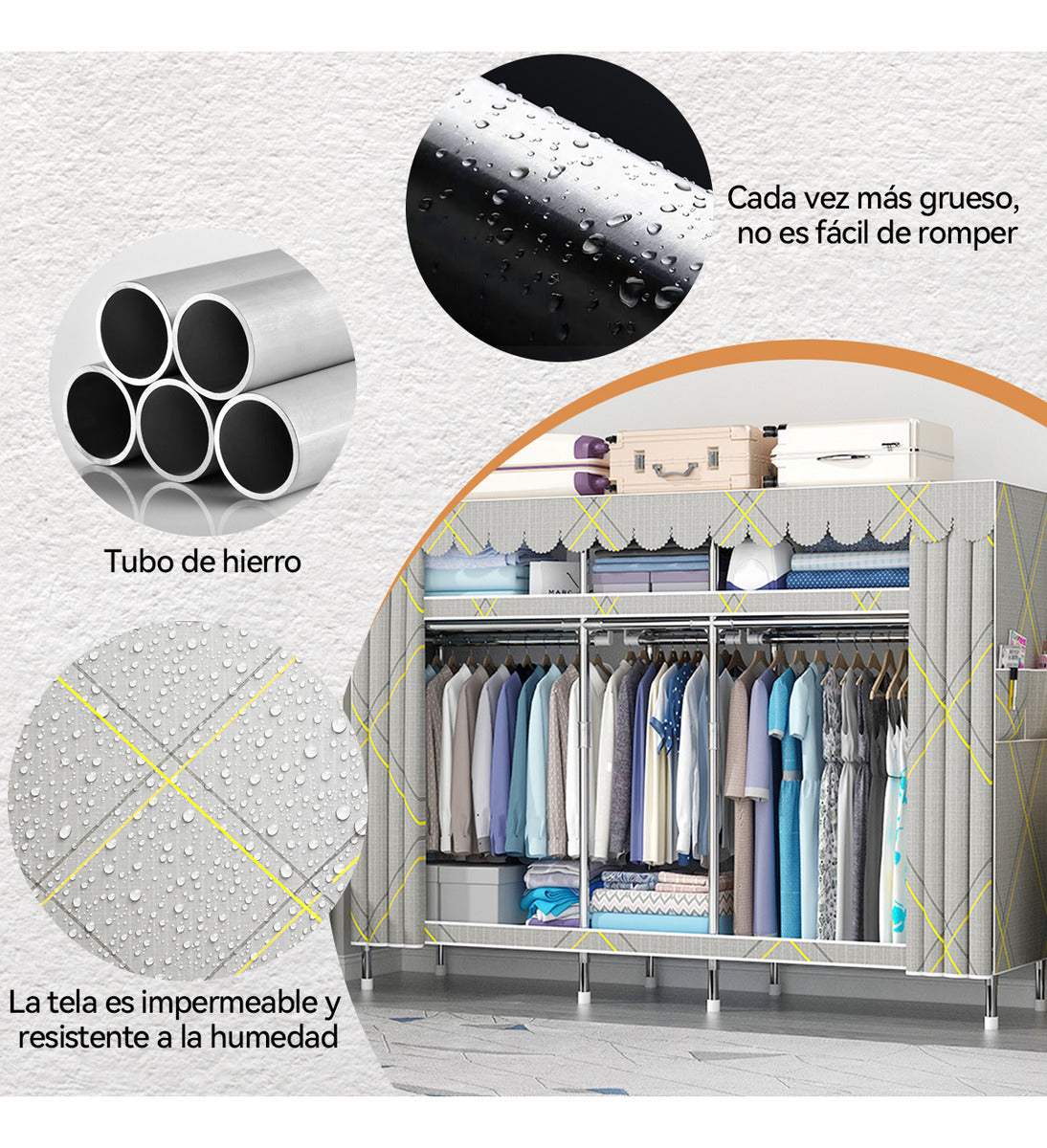 Closet Ropero Reforzado Portátil Aleación Pura 205cm Armable
