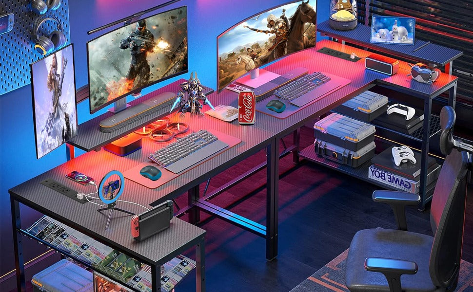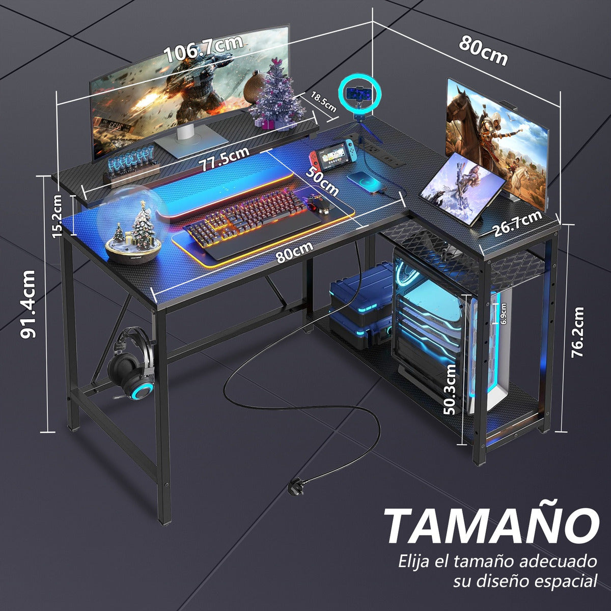 Escritorio De Oficina En Forma De L Con Luz Led Con Enchufe
