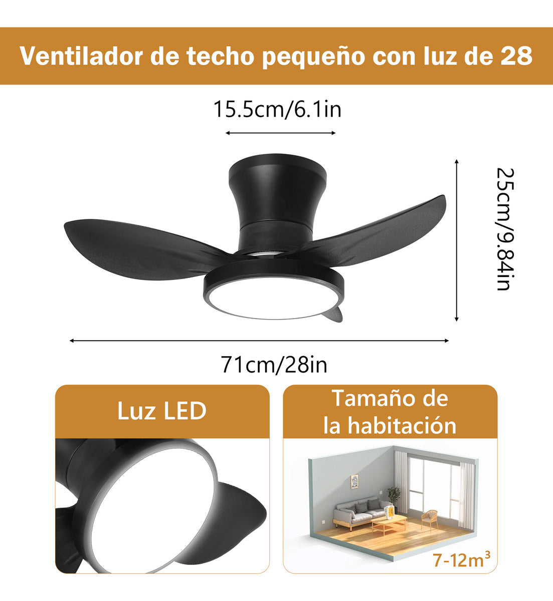 Ventilador De Techo Silencioso Con Luz Y App Controlventilador De Techo Empotrable Moderno De 28 Con Control Remoto,6 Velocidades,motor De Cclampara De Ventilador Para Interior, Cocina Y Dormitorio